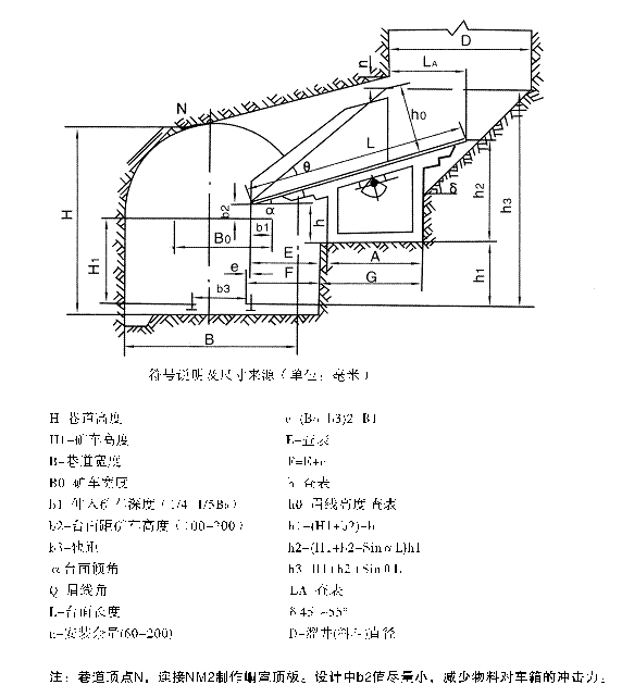 安裝峒室新溜井,(料斗)設(shè)計(jì)提供施工圖樣,并可檢驗(yàn)所選振動(dòng)放礦機(jī)的幾何參數(shù)和埋設(shè)參數(shù)與溜井(料斗)及運(yùn)礦設(shè)備是否相配套。