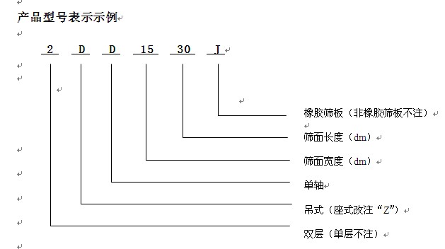 - 在選用時,如有改變篩面傾角要求,對于座式篩可另行設計,對于吊式篩可由用戶通過調(diào)整吊掛裝置的鋼絲繩長度來實現(xiàn)。